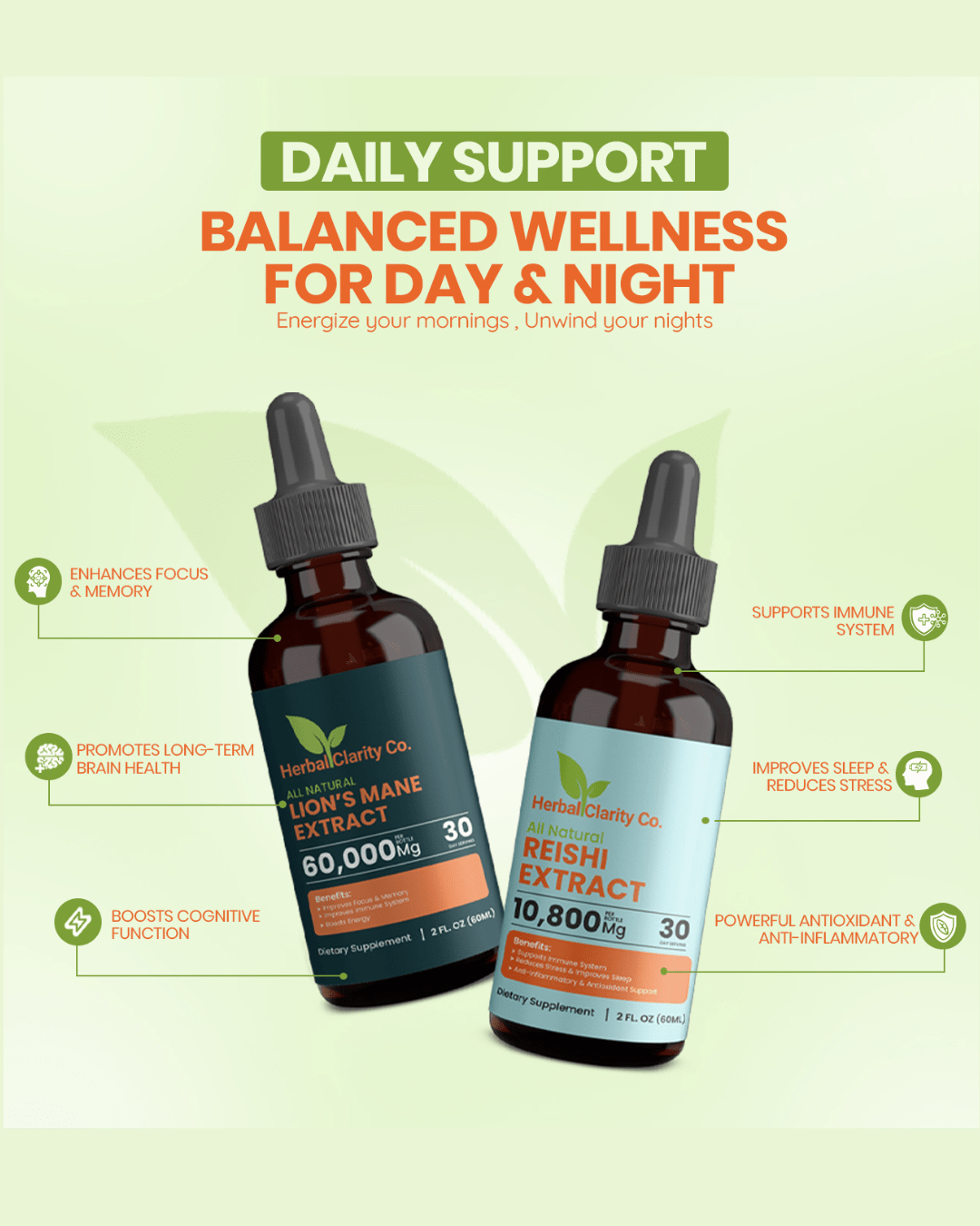 - Lion’s Mane offers a clean, natural mental energy without jitters.